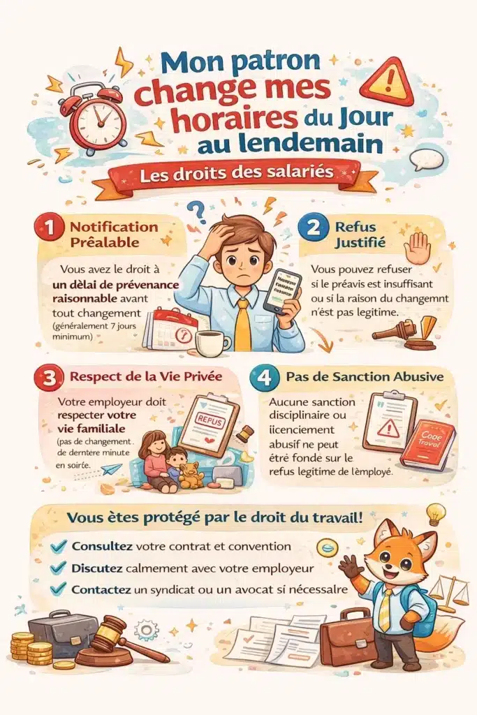 Les droits concrets si mon patron change mes horaires du jour au lendemain, quelles ripostes ?